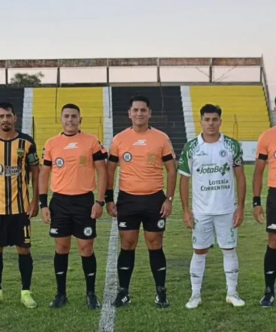 Verón, quien ya dirigió en el certamen al “albo” en el triunfo conseguido en Goya por 3 a 1 frente a Benjamín Matienzo (foto, al lado del capitán aurinegro), será secundado por Mariana Duré y Juan Hernández, mientras que como cuarto árbitro estará Juan Infrán.